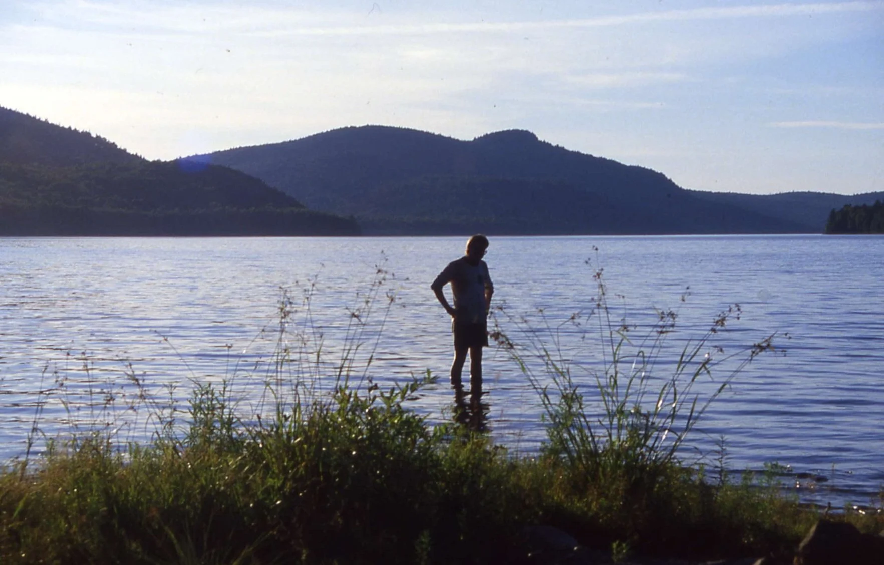 After enjoying reflections in the lake, go clammin’ with Alfie. Skip shows, tells of his latest debacle, a six-mile hike back for a sweater I had for him. I’m nearly frozen, but musseled. Hike on a crazy trail up, down, through the lake, finally at the shelter. Cook in the dark. Crash in a shelter with Michael P. Jones, as well as Fox and Dove, Alfie and Skip.